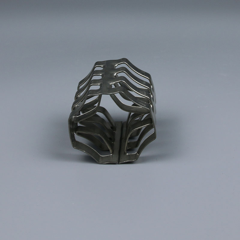 金屬八四內(nèi)弧環(huán)填料,它類似花環(huán)開關(guān)的金屬填料,也稱麥勒環(huán)填料。它的特點是環(huán)壁開敞面積大,所以具有通量大、阻力小和傳質(zhì)等特點。金屬填料八四內(nèi)弧環(huán),是以碳鋼、不銹鋼及鋁合金等材料制成的。應用于石化、化肥、化工、環(huán)保、制藥、制糖等行業(yè)的填料塔中。