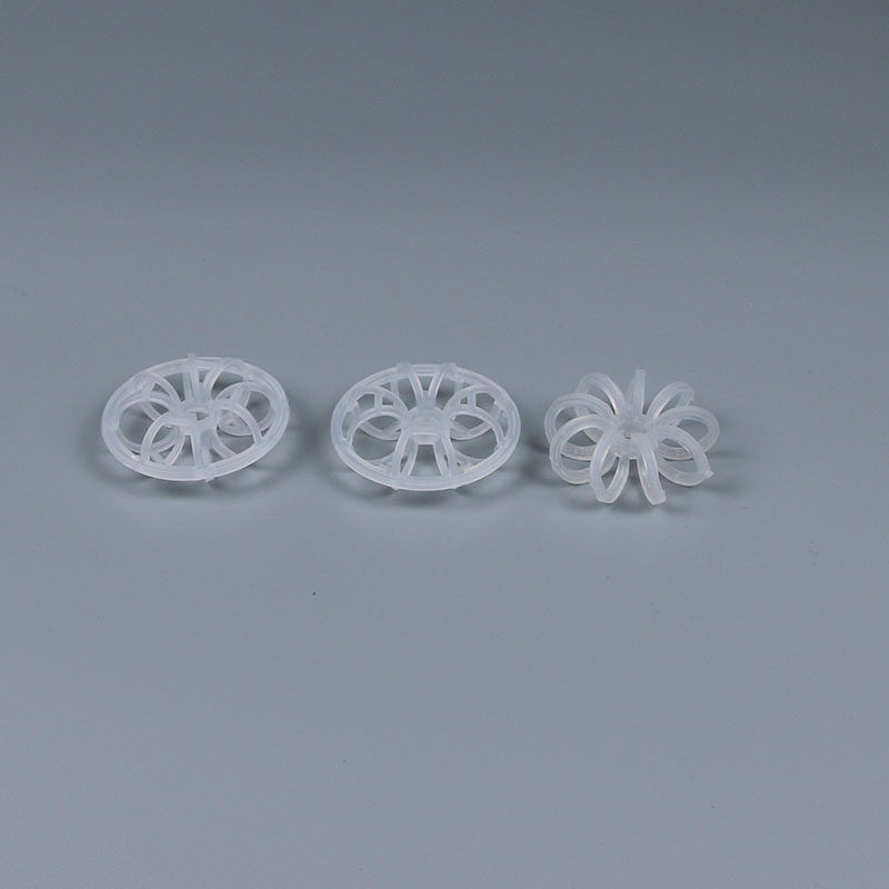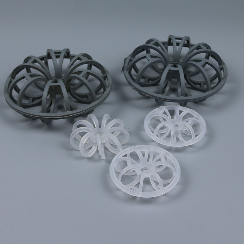 塑料花環(huán)填料是由許多圓環(huán)結(jié)繞而成,由于填料的空隙處能有較高的持液量,可使塔內(nèi)液體的停留時(shí)間較長(zhǎng),從而增加了氣液兩相的接觸時(shí)間,提高了填料的傳質(zhì)效率?;ōh(huán)填料具有空隙率大,壓降和傳質(zhì)單元高度低,泛點(diǎn)高,氣液接觸充分,比重小,傳質(zhì)效率高等特點(diǎn),多用于氣體洗滌、凈化塔中。